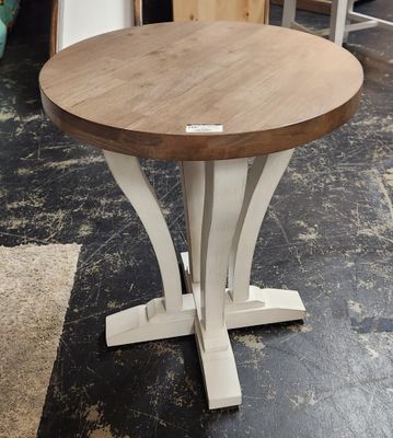The Elle table has one of the most elegant bases in the industry. Made of solid wood, it's perfect for seating 4-5 people. Measures 52" diameter x 30" tall. Also available with stain/paint finish.